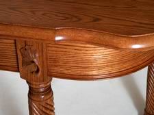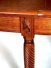 that a heavy oak table with turned legs, curved