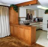 and cabinets. On the dining room side, the